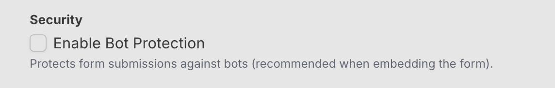 QuoteForms now have additional bot protection while embedded in your agencyβs site. You can enable bot protection by clicking the checkbox in your QuoteForms Settings page.